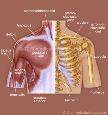 I am pretty sure I strained the deltoid muscle (as you see in the diagram). That is precisely where it hurts. What does this mean for my workouts this week? It means no upper body (above the abs) work. No swimming and no weight lifting that would engage my shoulder.