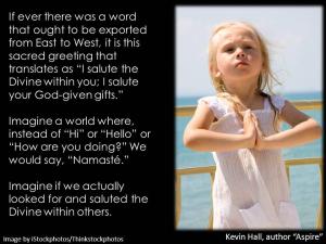 So, I want to challenge you to do something. This will be quite easy for some and monumentally difficult if not impossible for others. At some point today, go to a mirror, look yourself in the eyes and salute the divine within YOU with one simple word – NAMASTE!